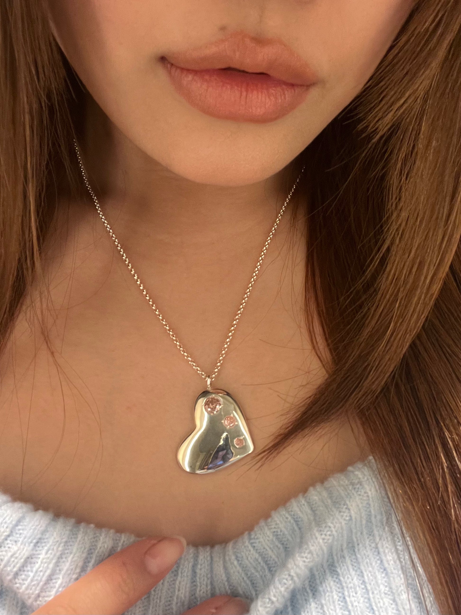 【POINT】重みのあるシルバーと、ピンクのストーンが特徴的で、いつものコーデのアクセントに。このネックレスを着用することで、少しでもあなたの毎日が彩りたくさんのハートで溢れますように、、、♡そんな想いを込めました。大切な人へのギフトにも、自分へのご褒美にもぴったりな、ホリデーシーズン限定のアイテムです。